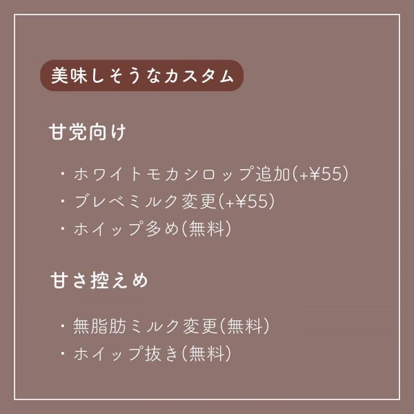 おすすめのスタバカスタムや、新作ドリンクの情報をお届けします。ぜひ、ご紹介するカスタムを試してみてください!