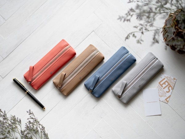 カラーは色鮮やかな4色を展開。柔らかく肌触りの良い質感のレザーに、ブランドロゴの箔押し(シルバー)を施しました。筆記具の収納が楽しくなるペンケースを、お仕事グッズに取り入れてみてはいかがでしょうか。