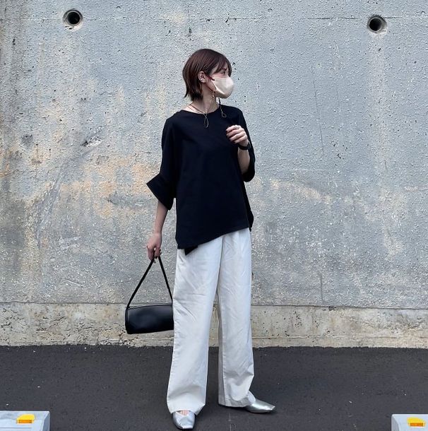 ストレートといってもダボっとしている印象はなく、適度な幅感が脚のラインをカバーしつつ、すっきり見せてくれるそう。