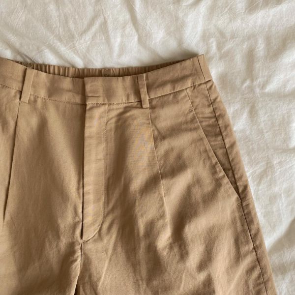 生地には天然繊維ならではの自然な吸湿性があり、汗をかいてもすぐに乾くんだとか。夏は脚も汗をかくため、通気性の良いパンツは重宝しますよね。