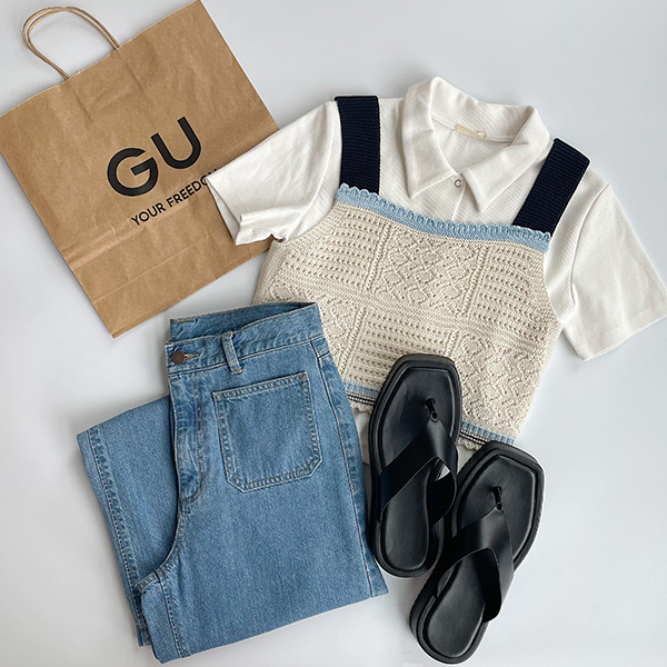 GUの「パッチポケットセミワイドジーンズ」