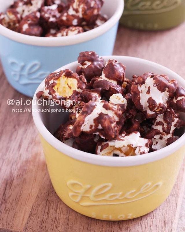 映画館や遊園地などで食べることが多いポップコーンは、チョコレートをかけてあげると甘くて美味しいお菓子に大変身。