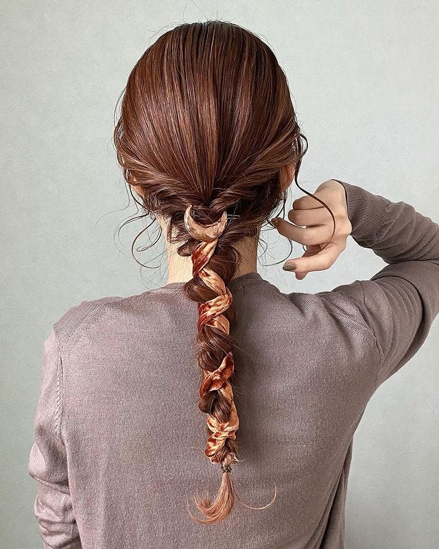 三つ編みにした髪で結び目部分を隠したりアクセサリーをつけたりしてこなれ感も演出できますよ。