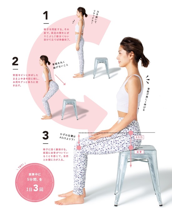 正しく座るだけ! 下腹ぽっこり解消に効果的なエクササイズ!