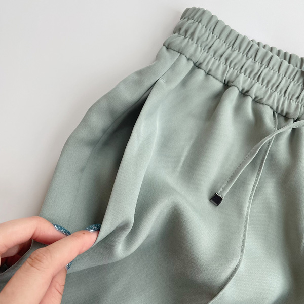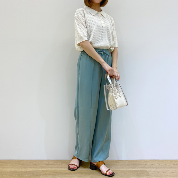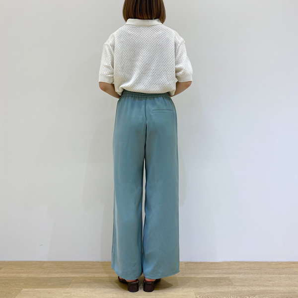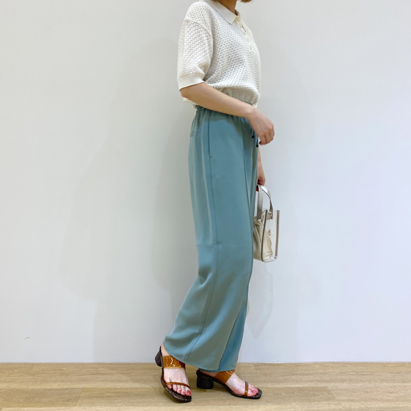 ウエスト部分がドロストデザインになった、抜群の穿き心地が叶うイージーパンツです。軽くてさらっとした素材だから、今すぐ穿けて暑い夏でも快適ですよ。