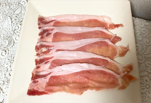 100gあたりが同じ値段の国産豚こま肉と、カナダ産三元豚しゃぶしゃぶで迷ったのですが、今回はしゃぶしゃぶに軍配。