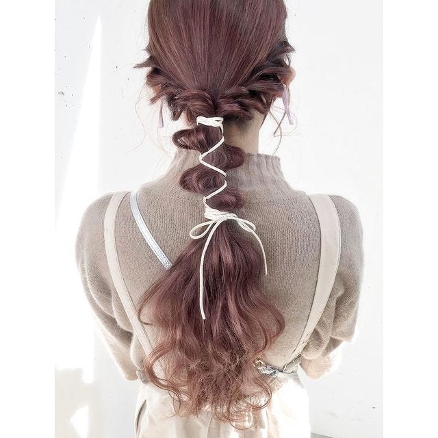 紐の間の髪を崩すのが難しい場合には紐を入れこんだ三つ編みなどもおすすめです。