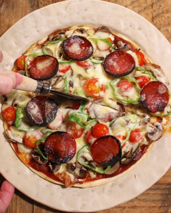 レシピのコツは、きのこを100度で18分ほど焼いてからのせることです。こんがり焼けたピザを熱々のまま食べれば、何倍も美味しいでしょう。