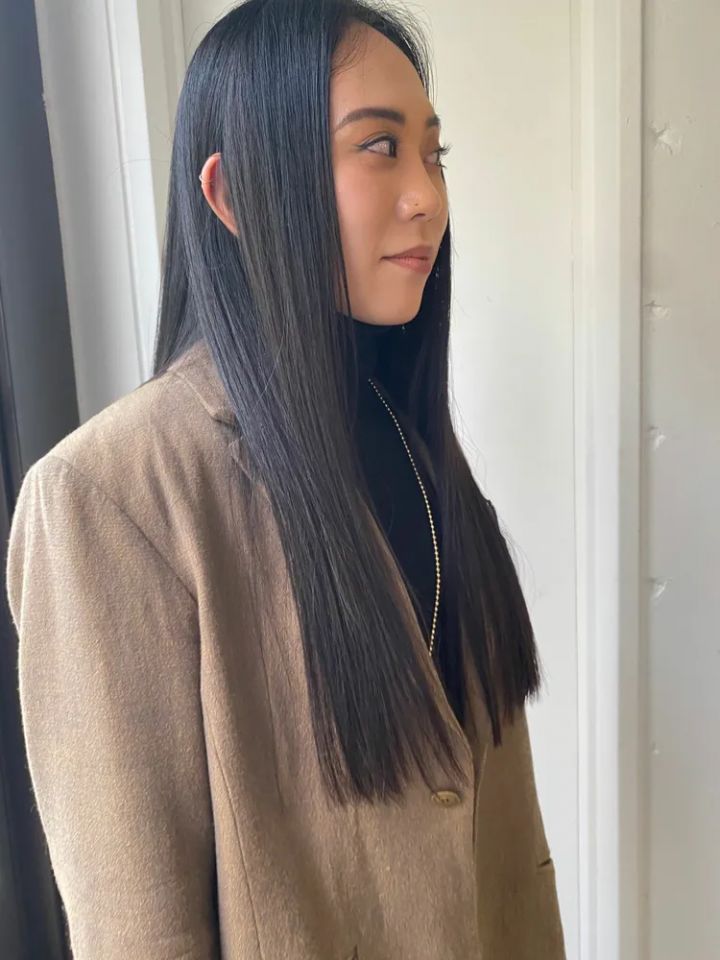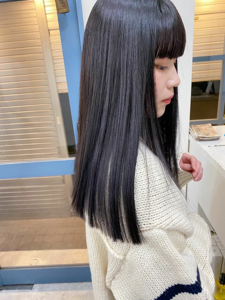 黒髪や暗髪の切りっぱなしでは子供っぽく見えてしまう方におすすめです。
