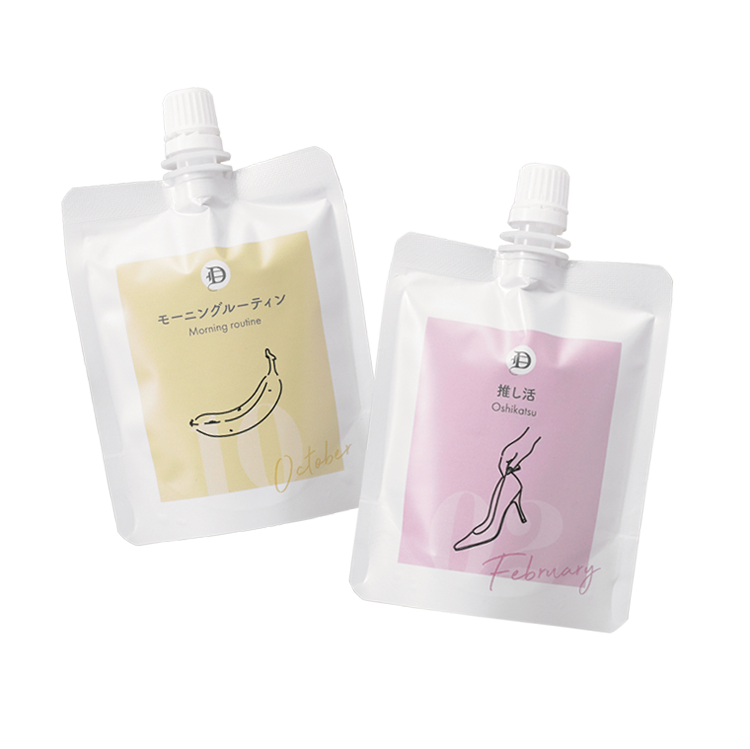 果実AHAや植物BHA配合の洗い流すタイプのピーリングでトーンアップ。12カ月のコンセプトと香りから選べるミニマルなパッケージ。