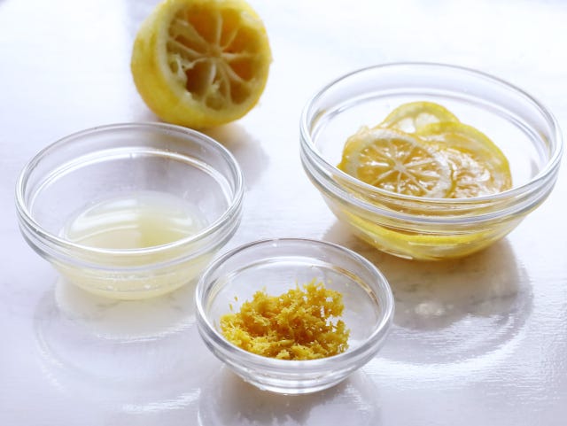 レモンは、果汁、皮、輪切り3通りにして使います。