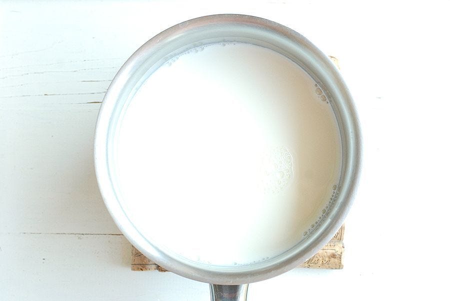 ① 牛乳と塩を小鍋に入れ沸騰直前まで温める