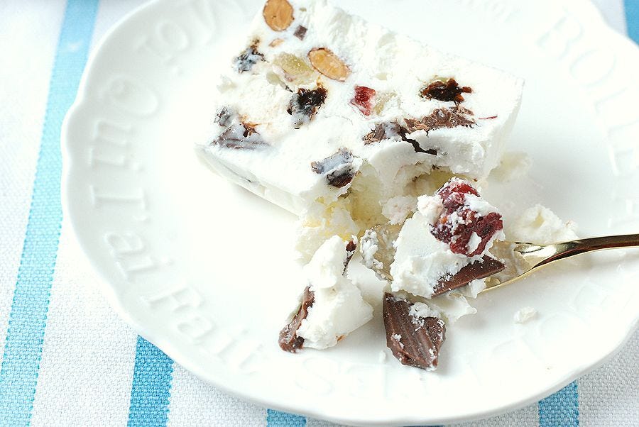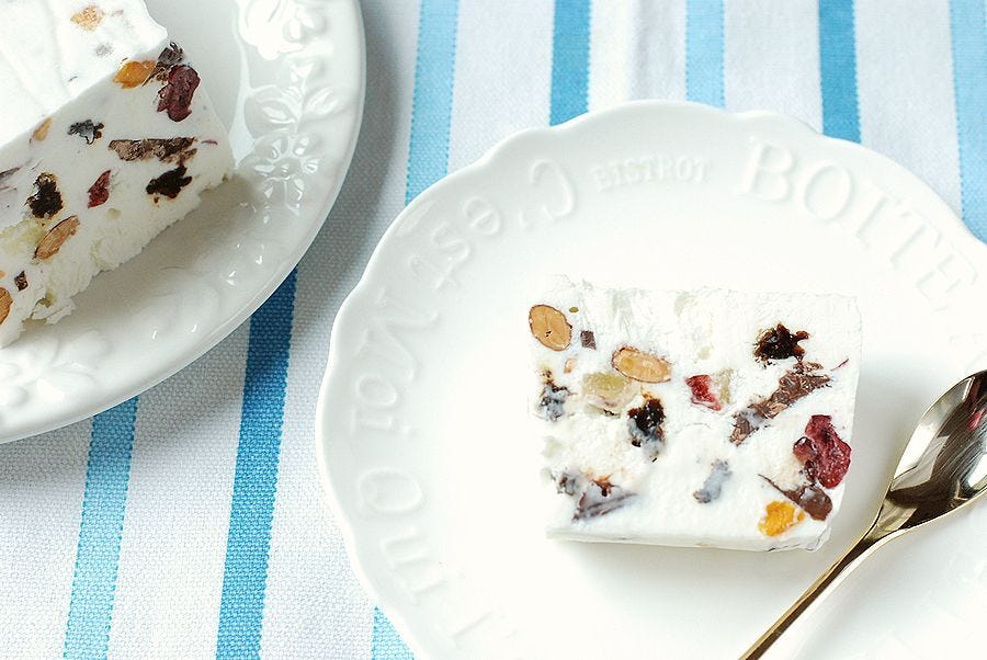 一般的には、リコッタチーズを使ったクリーム生地にドライフルーツやナッツ、チョコレートを加え型に入れ冷やし固めて作ります。