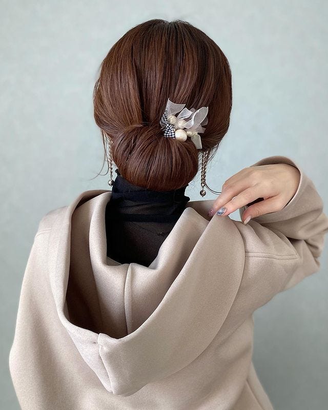 幅広めのシニョンは珍しく、人とあまりかぶらないアレンジなのが嬉しいですね。