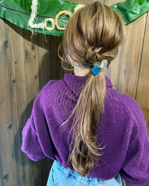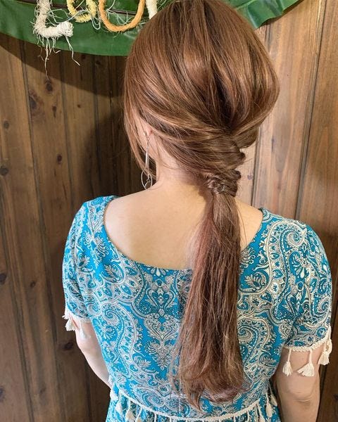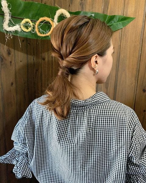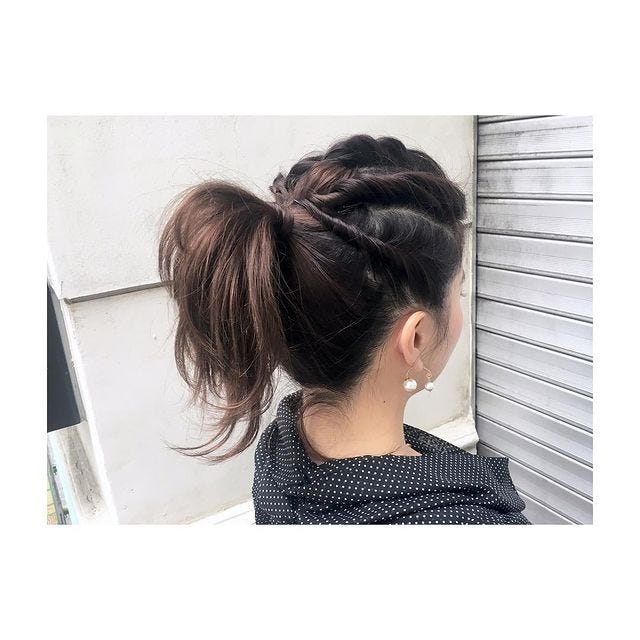 三つ編みをしたり、ねじったりしたりするだけでできる簡単ポニーテールです。