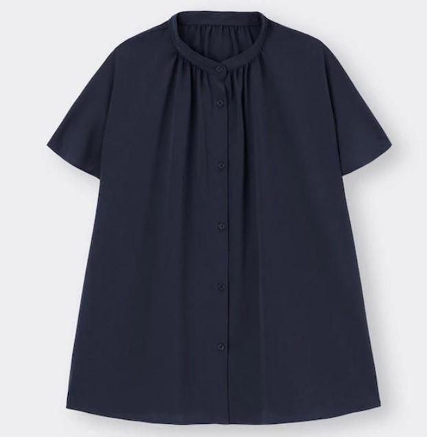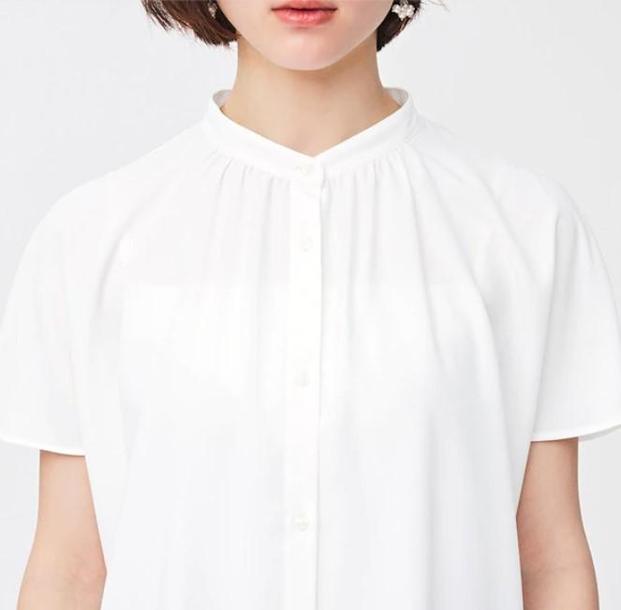 昨年も販売し、好評だったというエアリーバンドカラーシャツ。袖の長さを前年より少し長くし、二の腕がほっそり見えるよう改善されています。また、脇下部分は少し上げて、インナーが見えにくいようになりました。