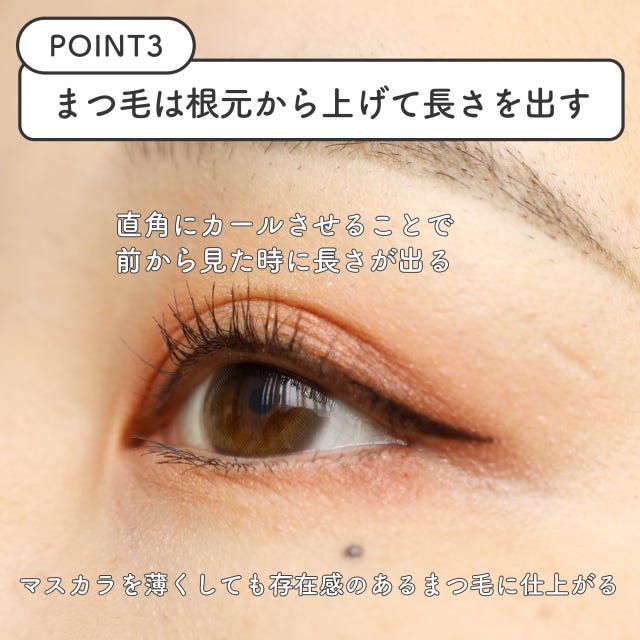【POINT3】まつ毛は根元から直角上げでマスカラを最大限薄く