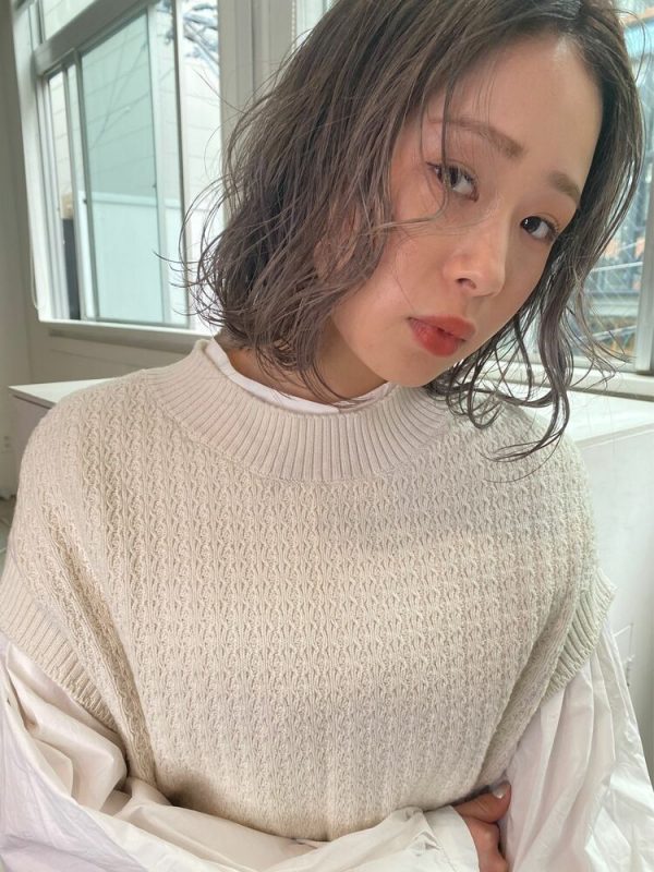毛先が重めに見えるワンカールボブですが、グレーアッシュの透け感のあるヘアカラーで可愛らしい中にも大人っぽい魅力をプラスすることができます。
