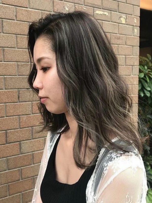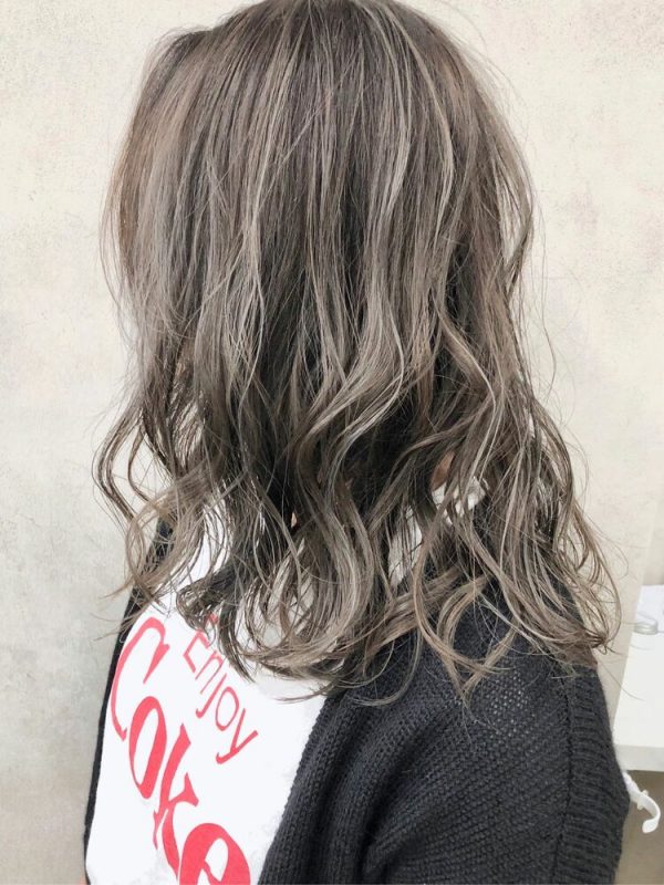 グレーアッシュのヘアカラーでハイライトを入れると派手になりすぎす落ち着いた雰囲気になります。