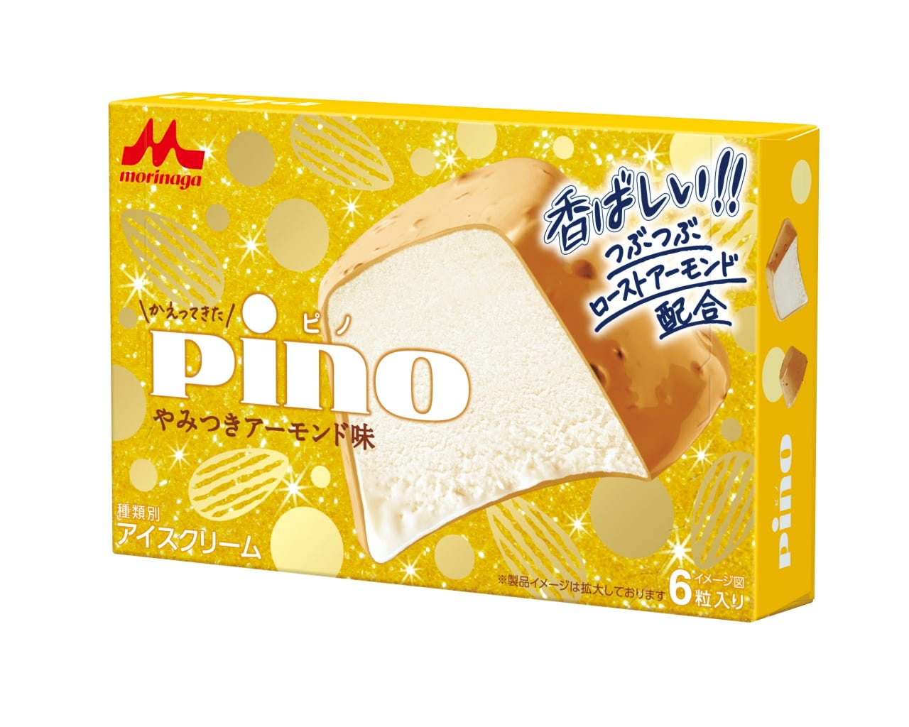 「ピノ やみつきアーモンド味(アイス)」は、アーモンド味チョコでバニラアイスをコーティングしたおなじみの「ピノ アーモンド味」の味わいに加え、つぶつぶローストアーモンドをチョコに混ぜ込み、ローストアーモンドの香ばしさや食感も楽しめるアイスクリームに仕上がっている。今回の復活を記念し、キラキラと輝くパッケージデザインにリニューアル!