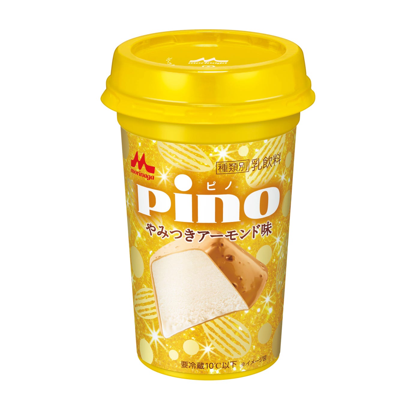 「ピノ やみつきアーモンド味(ドリンク)」はアーモンドペーストやホワイトチョコレートを配合した、まるで1本そのまま「ピノ やみつきアーモンド味」のような味わいのチルドカップドリンク。
