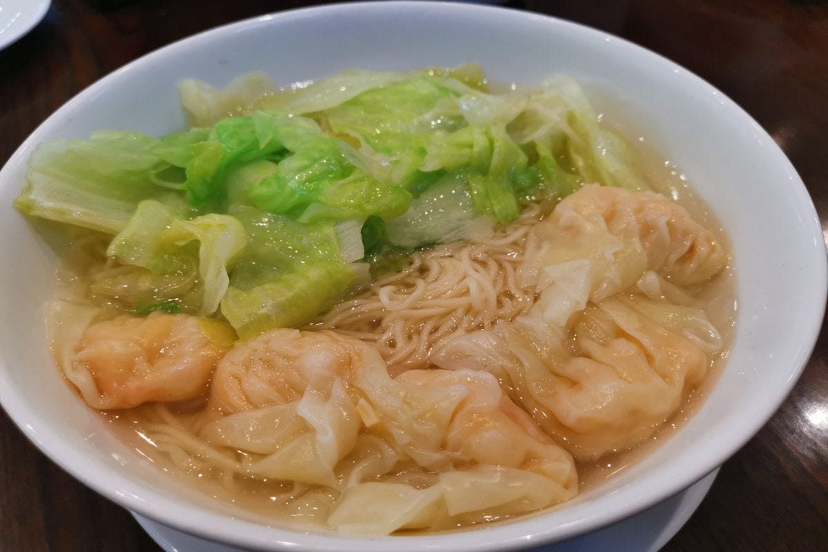 海老がぎっしり詰まったワンタンが5個も入っており、プリプリ感と旨味がたまらない。また、麺の食感も良く、さすが人気の香港料理店だけある美味しさ。
