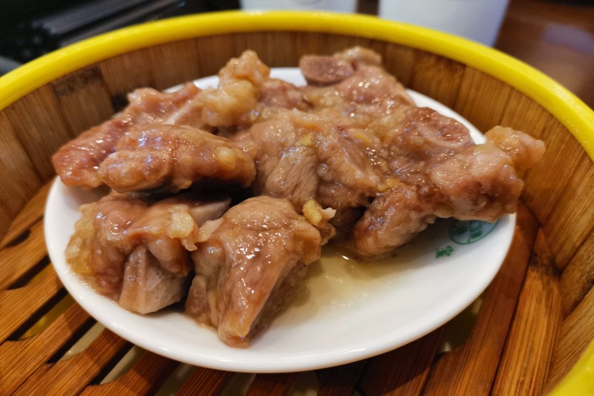 もうひとつのオススメが、「蒜蓉排骨」。簡単に言うと豚スペアリブのニンニク蒸しで、少し甘めのさっぱりしたタレにガッツリ効いたにんにく、ジューシーなスペアリブの組み合わせがたまらない。これで638円は破格である。