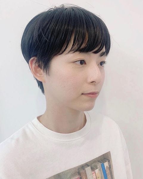 黒髪のマッシュウルフは野暮ったくて重いイメージになりがちですが、サイドパートでおでこを見せると逆にクールでスマートな印象にチェンジ。