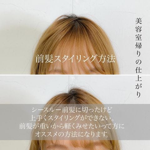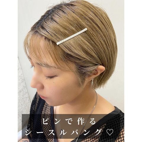 こちらもヘアピンを使って重い前髪をシースルーバングにするアレンジですが、ヘアピンは隠して見えない状態にするスタイリングです。