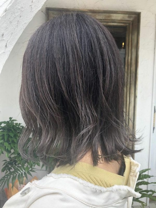 うざバングなどと組み合わせて無造作に仕上げても、グレーアッシュの透明感やツヤ感で地味な印象を感じさせません。