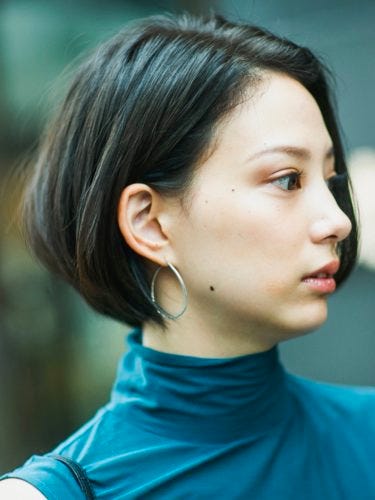 大人っぽい丸みのある黒髪のワンレンボブは、レイヤーとグレーアッシュのヘアカラーで抜け感をプラスしてあげましょう。
