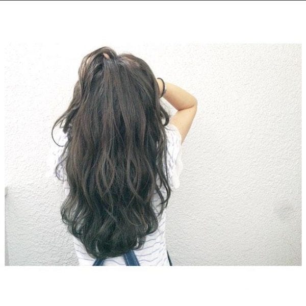 黒髪ウェーブがおしゃれなグレーアッシュ