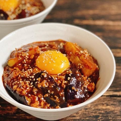 お好みで卵黄やごまをトッピングすると、まろやかな味わいもプラスされますよ。麻婆ナスが余ったときにもおすすめのレシピです。