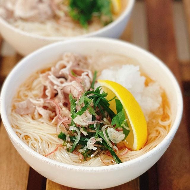 そうすることで、さっぱりしすぎず適度に旨味やコクのある味わいが楽しめますよ。肉や薬味たっぷりで具沢山でもヘルシーにいただけるのが魅力のレシピです。