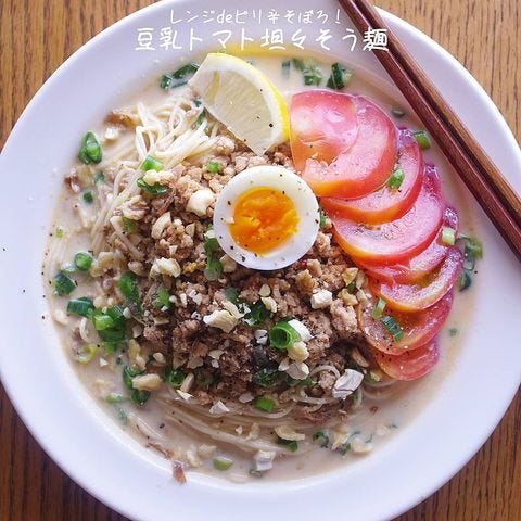 豆乳を使ったスープは麺つゆを水の代わりに豆乳で割るだけなので、こちらも簡単にできますよ。