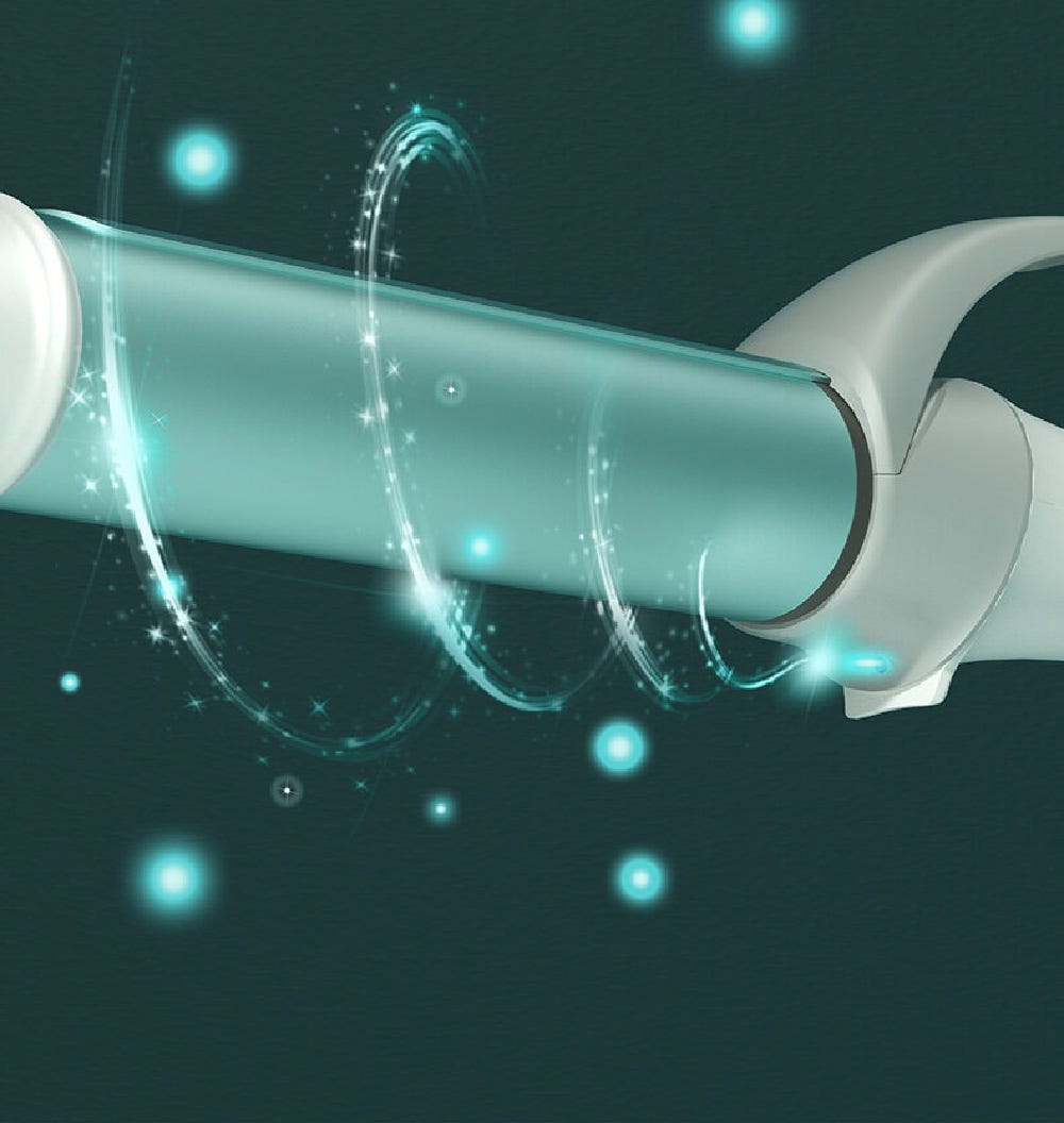 さらに特筆すべきは、スタイリング中に吹き出し口から出るマイナスイオン。キューティクルをカバーし、パサつきの原因にもなる静電気を抑えることで、指通りのいいまとまりあるヘアへと導いてくれる。