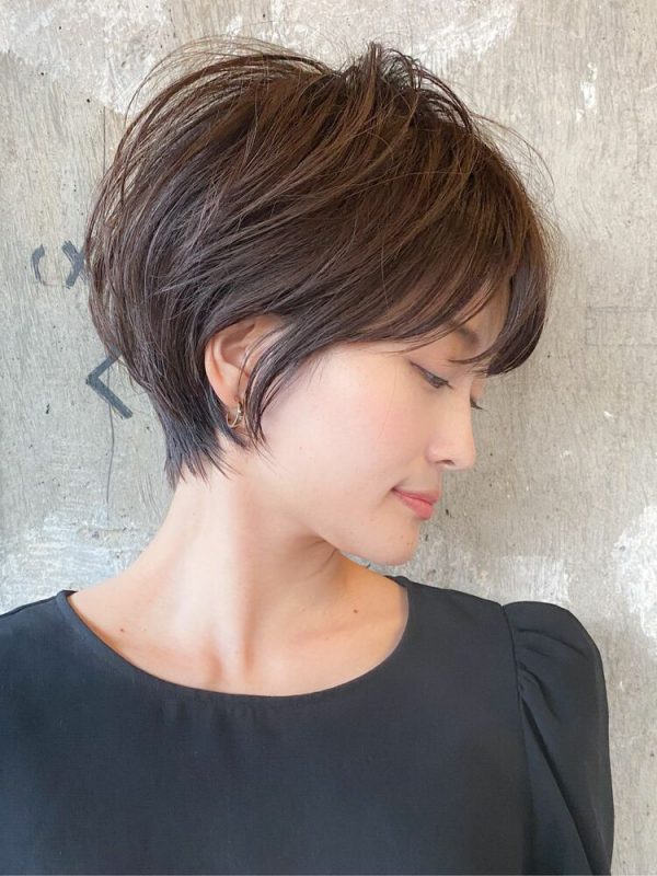全体的に髪の毛がぺたんとなってしまう40代の大人の女性には、短すぎないショートボブスタイルがおすすめです。