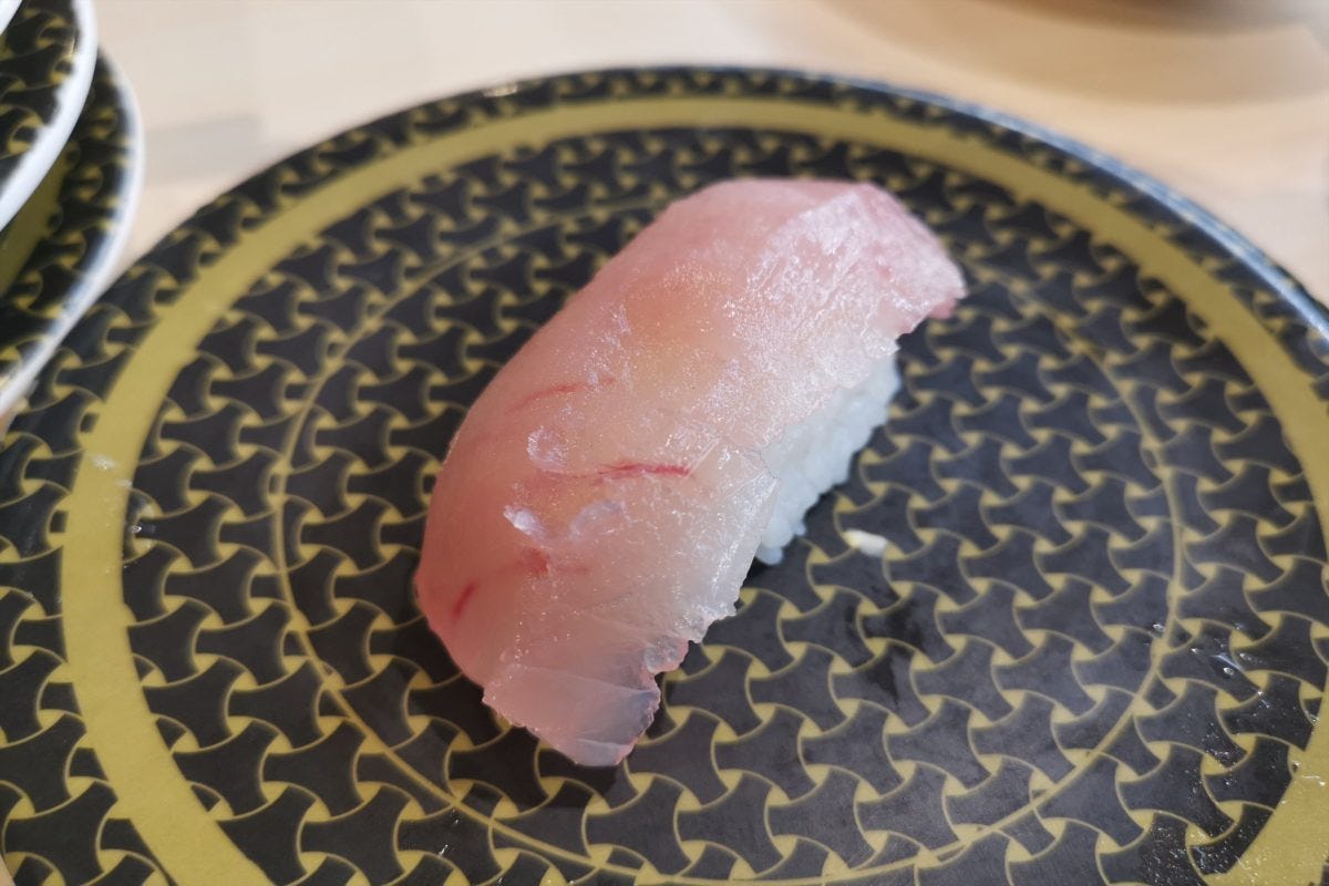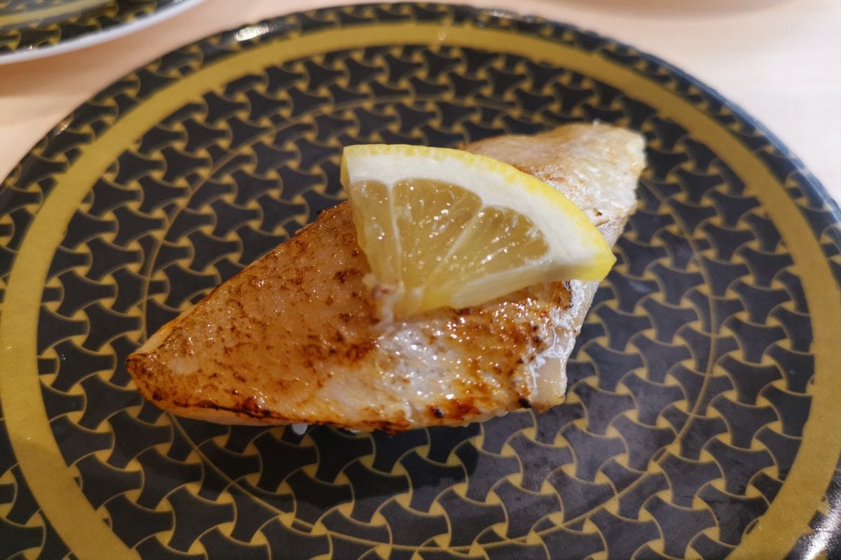 最後の焼津産大切りびんちょうも100円としては十分な大きさ。全体的にデカネタ祭りと言って過言ではないデカネタ揃いであった。