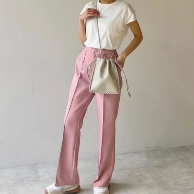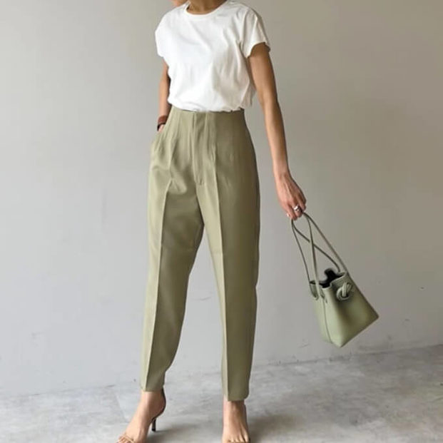 脚長効果絶大の「コンパクトトップス+パンツイン」