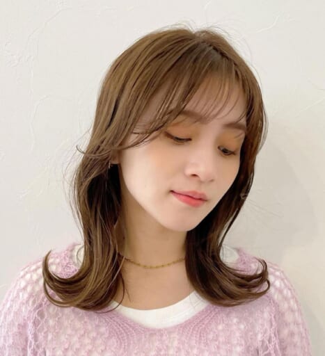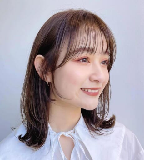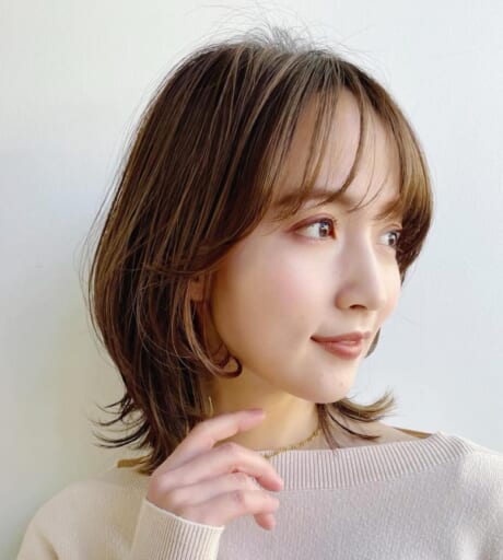 ほつれ感のある毛先と程良く軽い前髪の効果で顔周りのボリューム感をコントロールしやすく、フェイスラインのカバー力が高いのも魅力です。