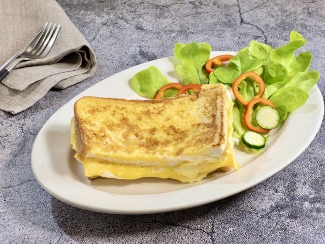 韓国発『ワンパントースト』は、フライパンひとつで作る、ホットサンドのようなトーストで、フライパンに溶き卵を流し入れ、食パンを入れて具材を乗せ、折り込んで作ります。