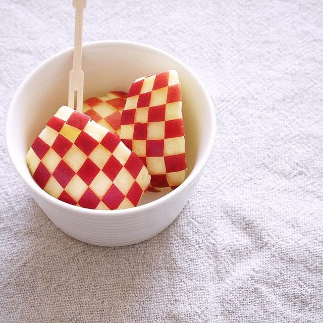 チェック柄のりんごの飾り切りアイデア