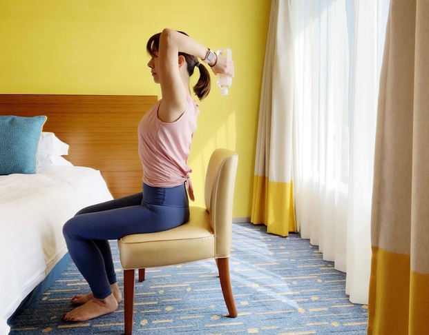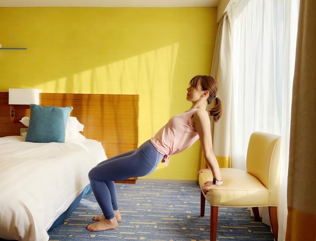 5月に入り、天気のよい日は汗ばむ季節になってきました。日中は薄着で過ごす人も多いのではないでしょうか。そうなると気になってくるのは「二の腕」の脂肪…。おうち時間が増えた今、トレーニングで日々鍛えている人もいますが、まだまだしぼりたい! という人も多いはず。今回は、椅子を使ってできる二の腕に効果抜群のトレーニングをヨガインストラクターの高木沙織さんに教えていただきました!