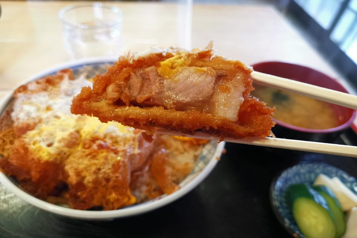 また、カツの厚みも「これで並!?」と驚いてしまうほどの肉厚さで、非常にジューシー。少し甘めのたれに負けない旨味のある豚肉で、衣のサクサク感もしっかり残っている。千葉県一と言われているが、全国で比較してもトップクラスにウマいカツ丼であることに間違いないだろう。