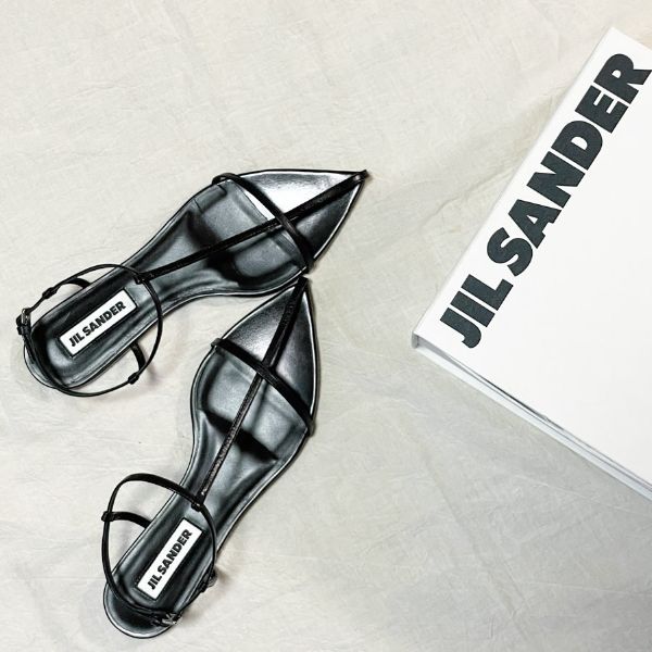 そんなジルサンダーの中で、この夏必見なのが「レザーストラップサンダル」。カーフレザーの細いストラップで織り込まれた、ポインテッドトゥのスタイルです。