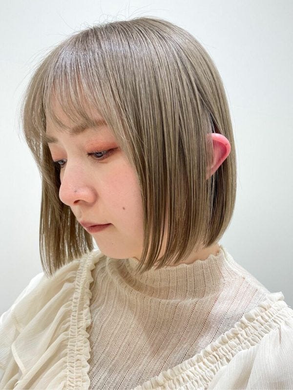 シンプルなボブに、つやの出るグレージュを合わせれば透明感たっぷりなおしゃれボブに進化しますよ。