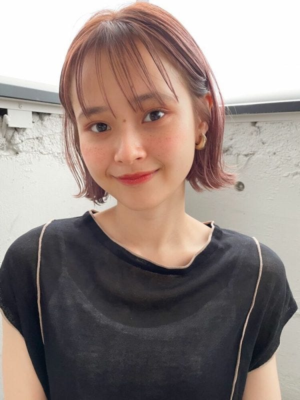 人気の外ハネボブに暖色のピンクを合わせて、とびっきり可愛らしいスタイルに仕上げていますね。