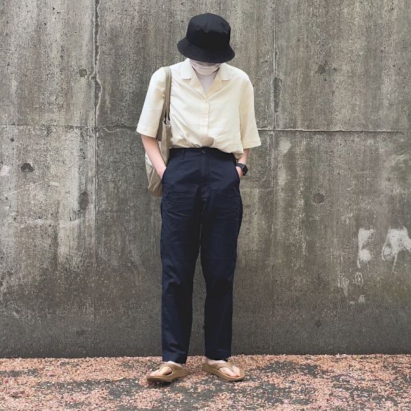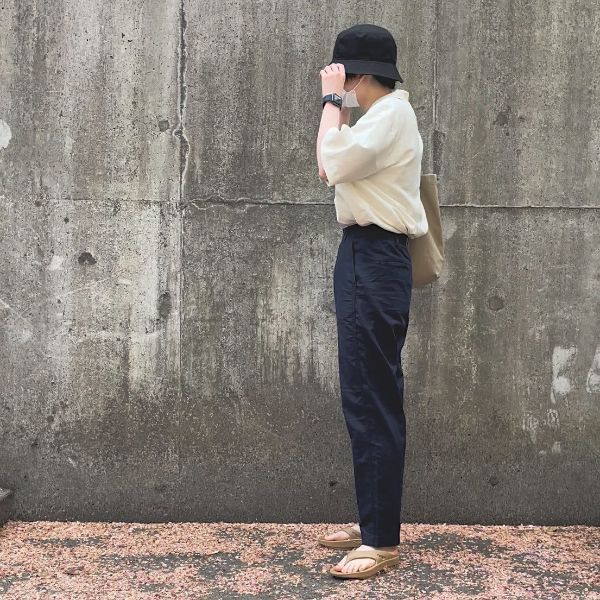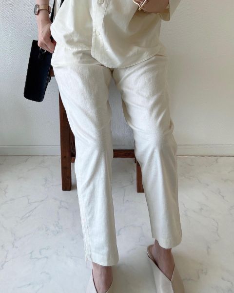 スタイルアップ効果が期待できるのも、「リネンコットンテーパードパンツ」の嬉しいポイント。