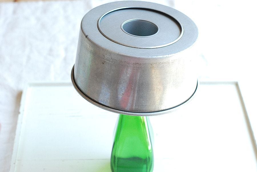 ⑨ 焼き上がったら、背の高い瓶などを使って型を逆さまにしたまま完全に冷まして型から取り出す。