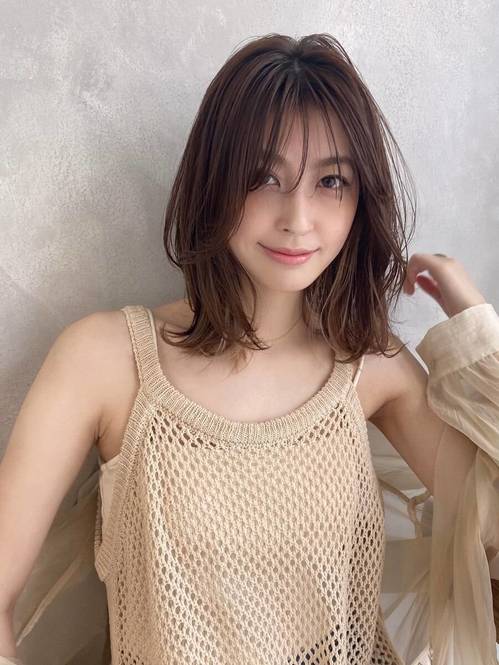 少し長めのシースルーバングが涼しげで、ヘルシーでツヤっぽい30代女性に魅せてくれます。
